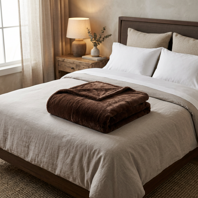 Bộ chăn ga Tencel cao cấp màu nâu caramel ấm áp, mềm mại như lụa, thoáng khí tự nhiên, an toàn cho da nhạy cảm.
